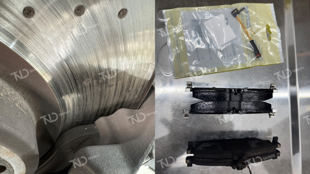 점검 결과, 앞 브레이크 패드 잔량이 거의 남지 않은 상태로 확인되어 교체가 진행되었습니다.​