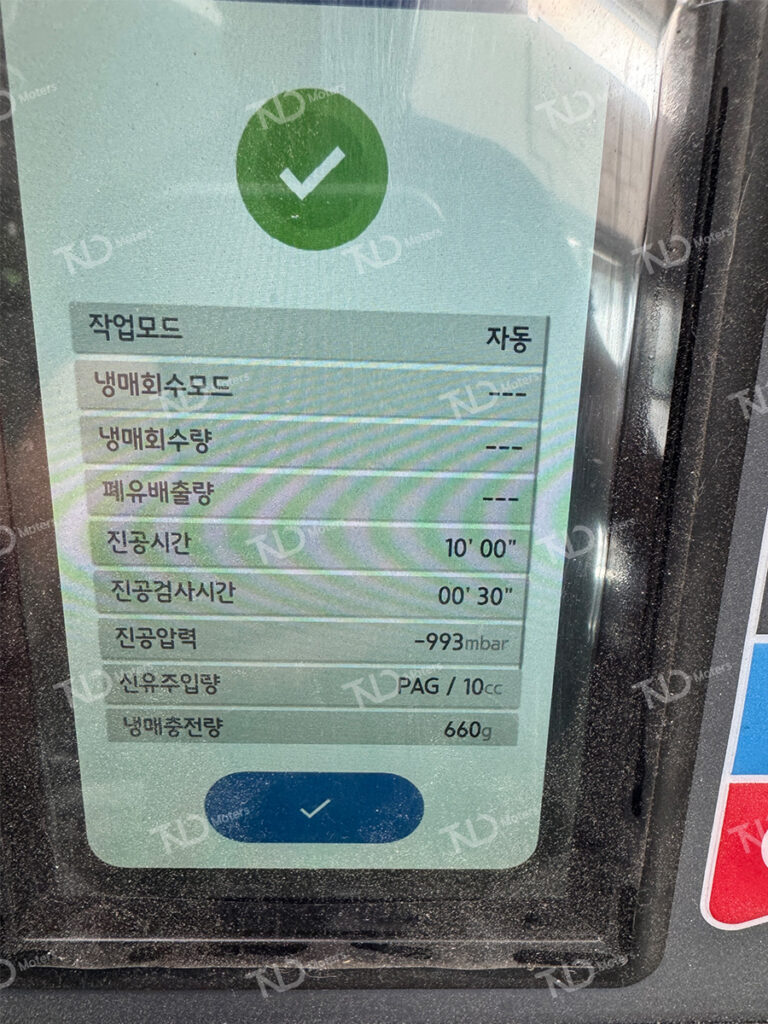 에어컨 가스량은 정상으로 확인되었으며