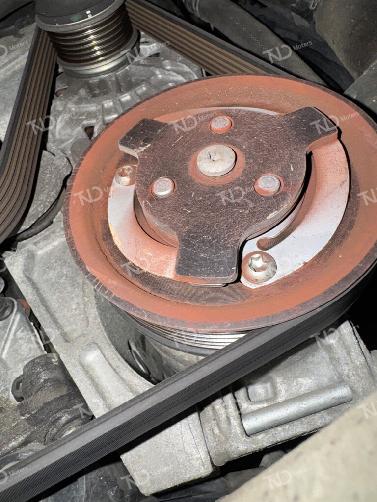 에어컨 콤프레샤 확인시 앞에 풀리에 녹가루가 확인 되었습니다.