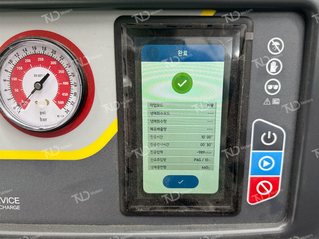 에어컨 작동시 저압 및 고압 확인시 정상 수치로 떨어지고 오르는 것을 확인 하고