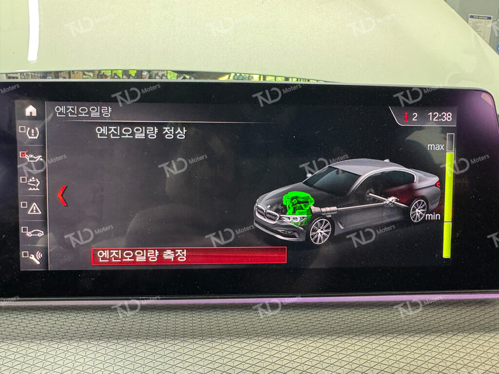 엔진오일 주입이 완료된 후 엔진오일 레벨 체크를 통해 한 번 더 정량의 오일이 주입된 것을 확인 후엔진오일 교환주기 리셋을 통해 엔진오일 교환 작업을 마무리 합니다