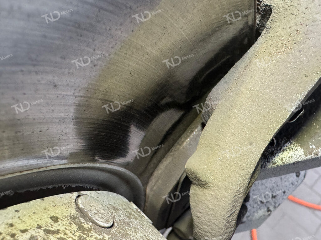 연료필터 교환 후 주변에 묻은 경유를 파트클리너로 청소해 줍니다.연료필터 교환을 마무리 후뒤 브레이크 패드 잔량을 확인합니다.