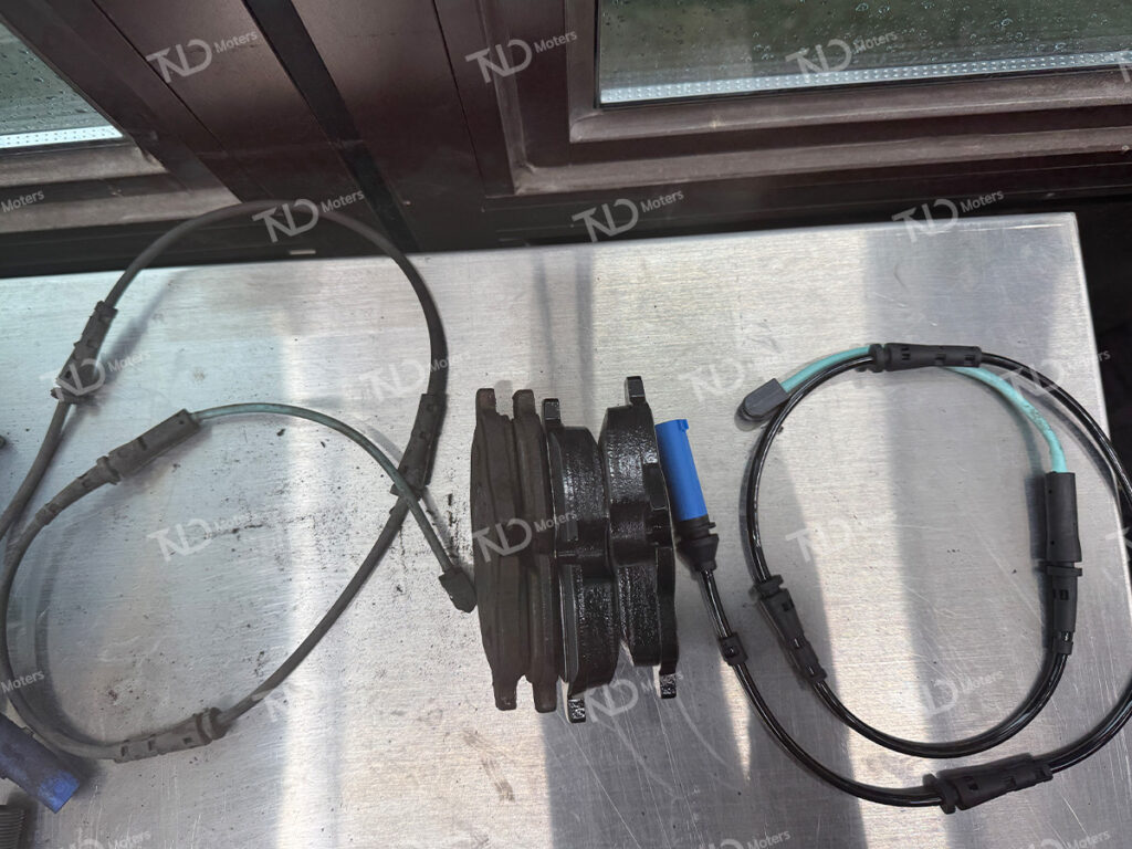 교체가 진행될 신품 브레이크 패드를 준비 후 장착을 진행합니다.브레이크 패드 센서 역시 신품으로 교체가 되었습니다.교체가 완료된 후 토크렌치를 사용하여 교체를 위해 탈거했던볼트를 규정 토크 값을 이용하여 체결합니다.