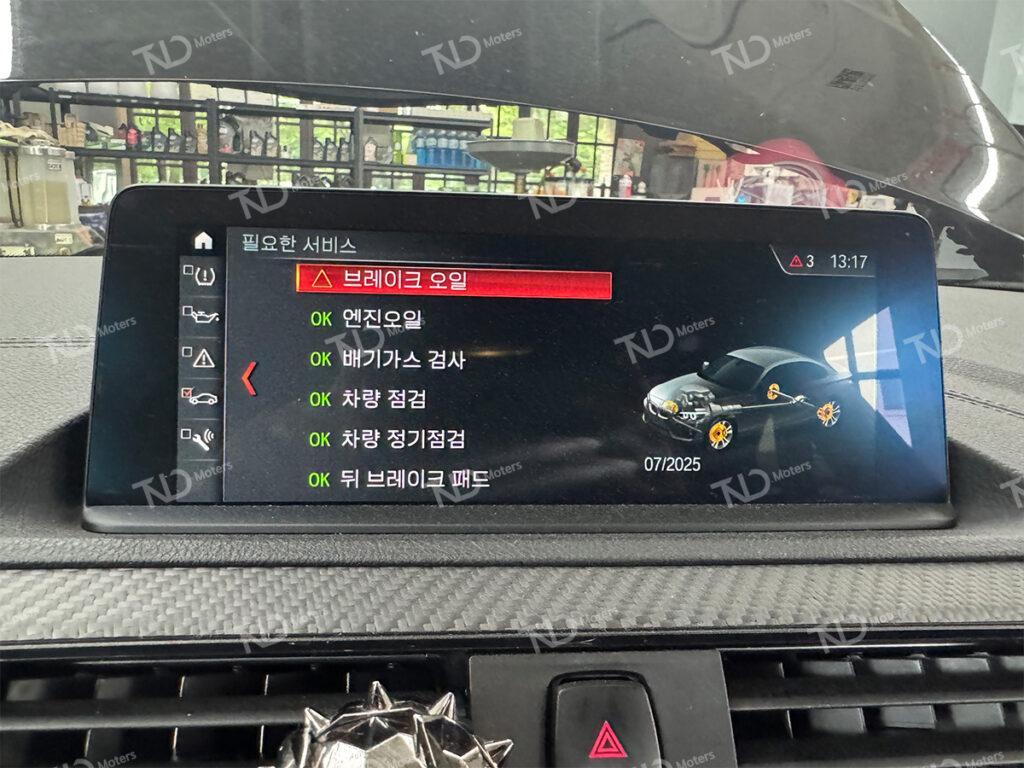 엔진오일과 브레이크액을 교체 준비합니다.BMW 차량의 경우 CID 모니터상으로 소모품의 교체 시기를 보다 쉽게 확인하실 수 있습니다.