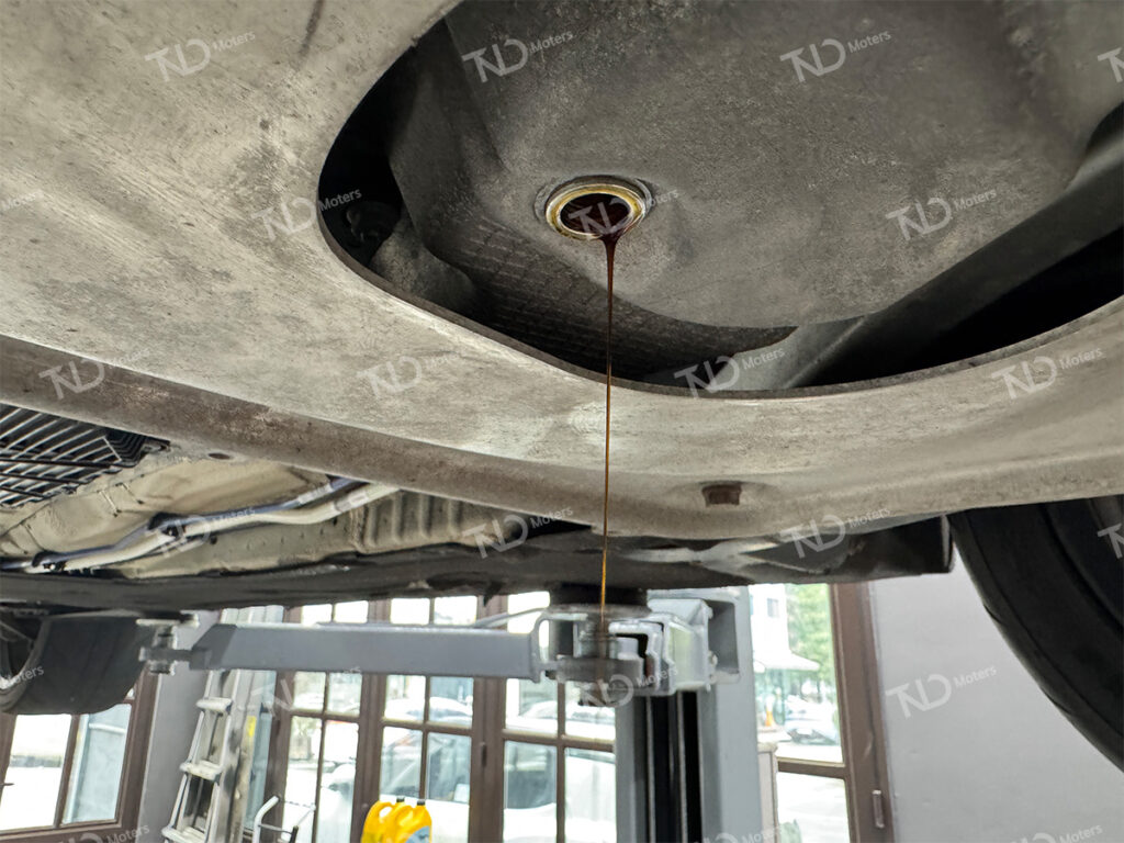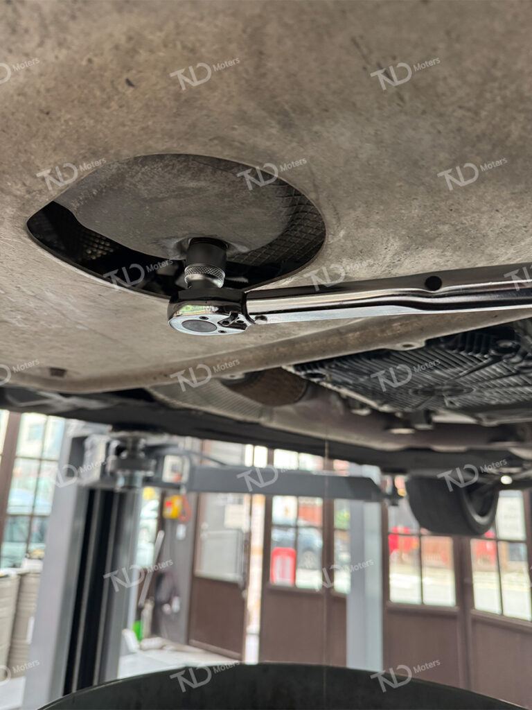 엔진오일 교체를 위해 드레인 플러그를 탈거하여 기존의 엔진오일을 모두 배출합니다.엔진오일 필터 역시 탈거를 진행합니다엔진오일 배출이 완료된 후 토크렌치를 사용하여 제조사에서 권장하는 규정 토크로 체결을 진행합니다.