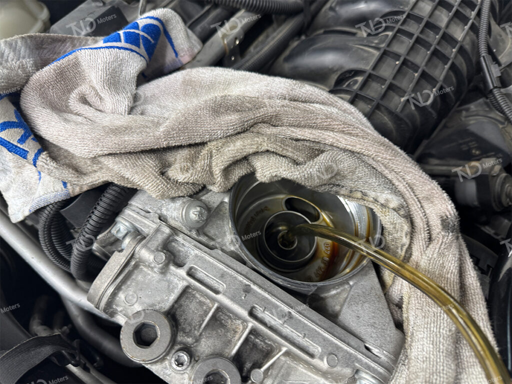 오일필터를 교환하기 전 오일필터 하우징에 남아 있는 기존오일을 오일드레인 해주고새 오일필터를 규정토크에 맞게 토크렌치를 사용해 체결해 줍니다.
