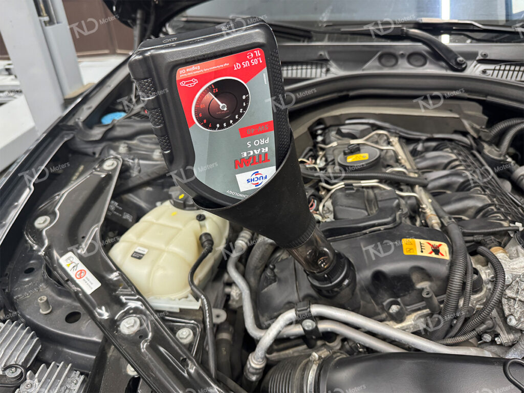 오일필터 장착 후 새로 주입 될 훅스 엔진오일을 준비합니다Fuchs TITAN Race pro S 5W-40 엔진오일입니다Race pro S 엔진오일은 ESTER / PAO 기반의 최고급 합성유 입니다.