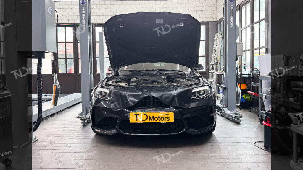 안녕하세요 티앤디모터스 입니다.이번에 입고된 차량은 BMW M2 차량이 입고되었습니다.엔진오일과 브레이크액 교체 알람이 점등되어저희 티앤디모터스 를 찾아주셨습니다.