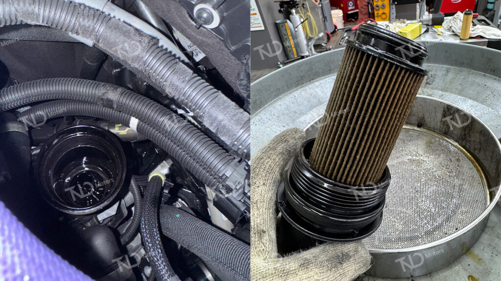 그리고 엔진오일 필터 역시 신품으로 교체 후 토크렌치를 사용하여 체결합니다.