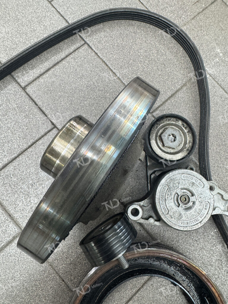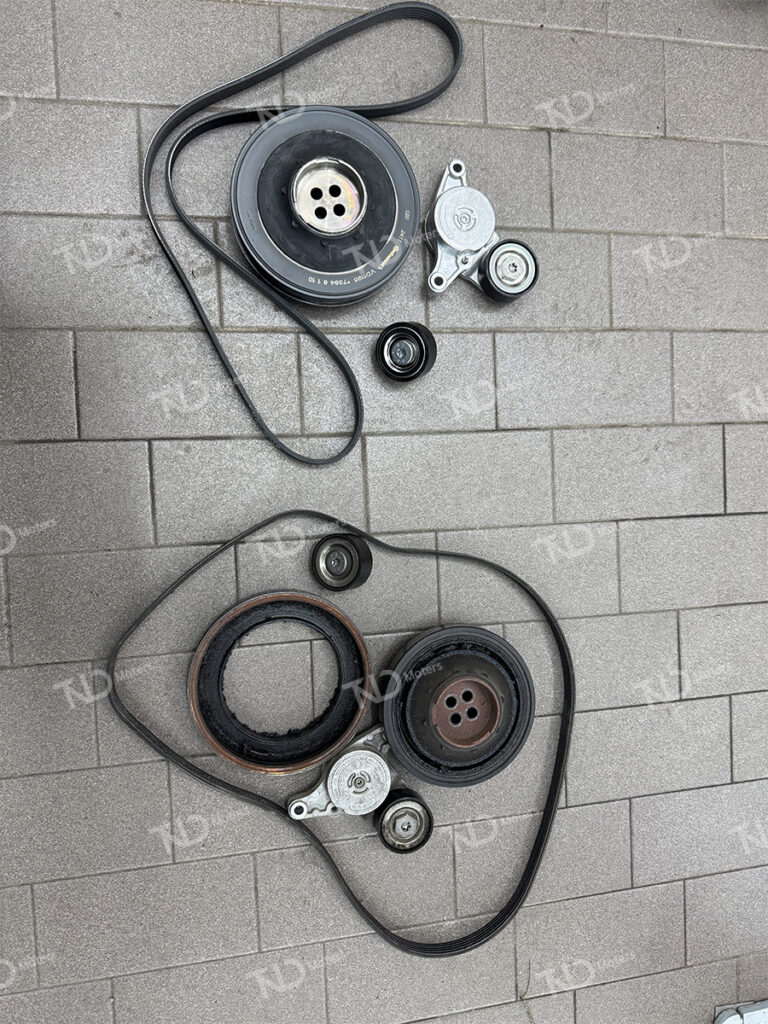 새로 장착될 신품 댐퍼풀리 및 겉밸트를 준비해 줍니다