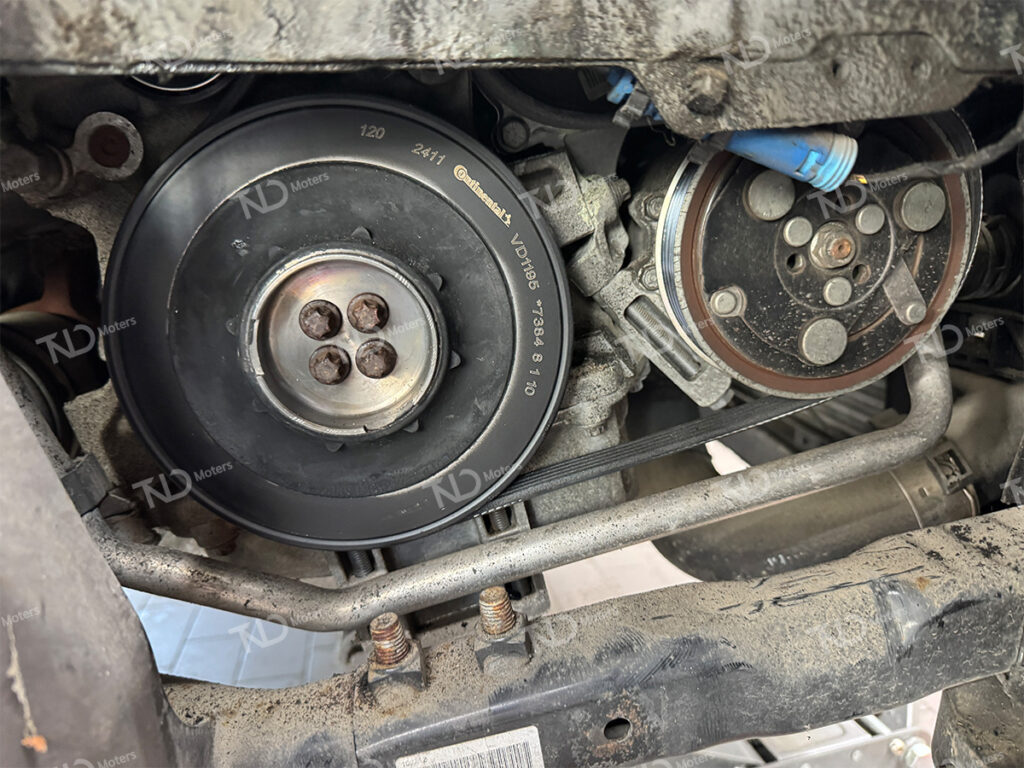 점검결과 차량의 댐퍼풀리가 파손이 확인되어 댐퍼풀리 및 겉밸트 교체를 진행하기로 하였습니다